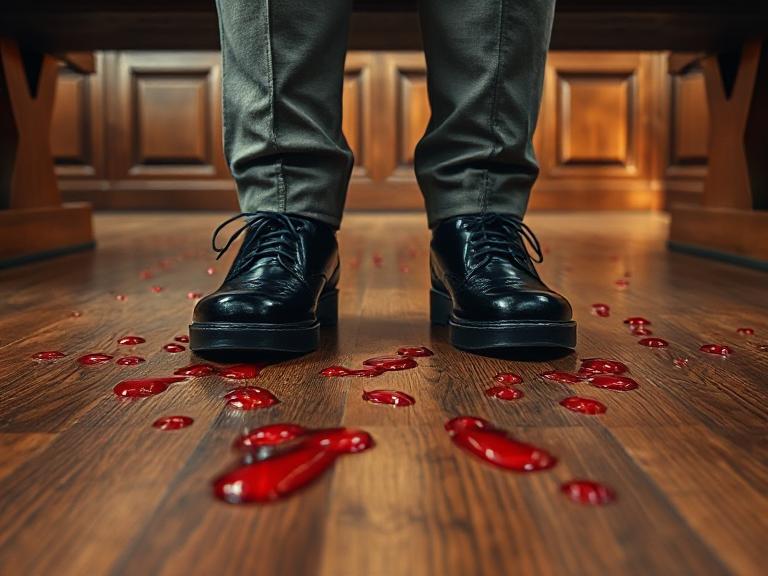 A guard quietly approached and gently, but forcefully, aided me to my feet and guided me from the room. As I stepped beyond the threshold and into a faded wood-panelled hallway, I wavered slightly on leaden feet and braced myself against the doorframe. The guard released me and, after his rough hands had withdrawn their momentary support, he whispered in my ear, “murderer”.